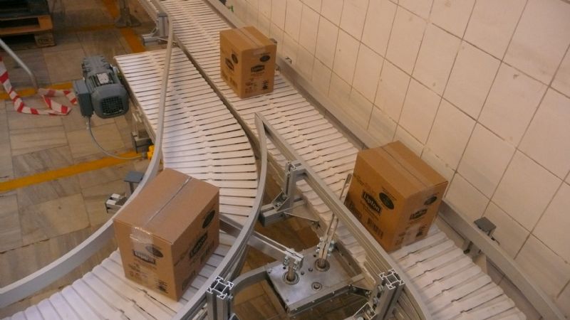 Merging systems are handled by a mechanical traffic police unit or by pneumatic stopper and sensor combination. We control the main line comers and as long as we see a gap we release the product on connection conveyor to merge the main line.